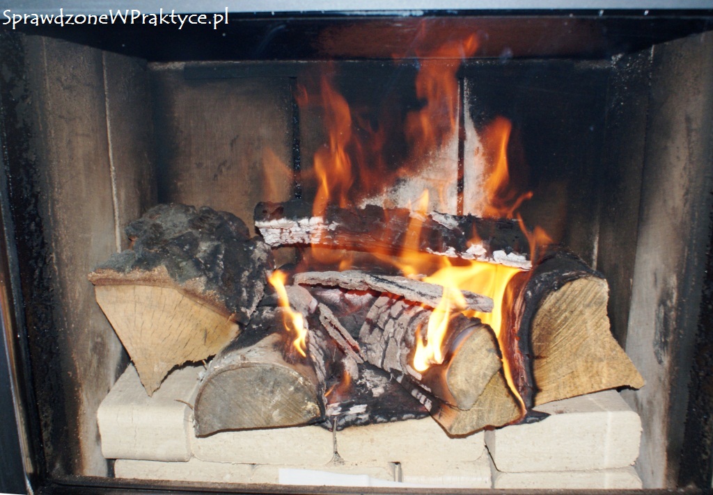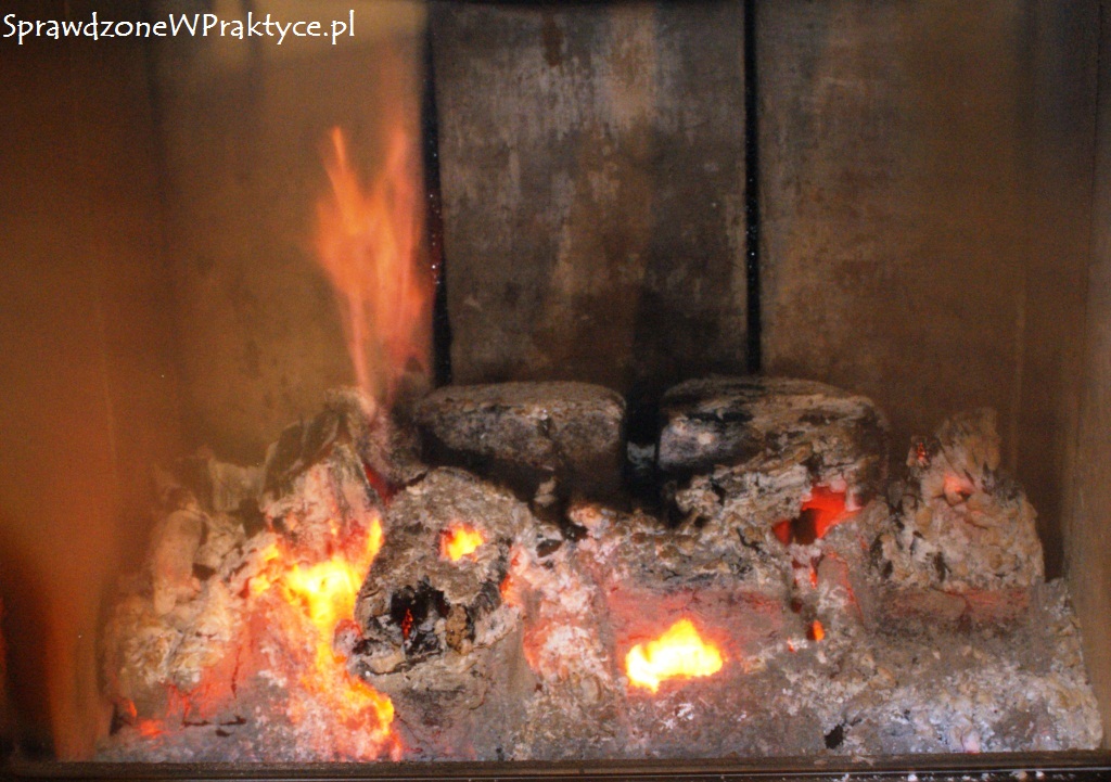 Ponieważ w kominku miałem kilka kawałków drewna, to położone na wierzchu kostki brykietu dość szybko zajęły się ogniem. Dzięki temu kominek bardzo szybko się rozgrzał i w domu szybko robiło się ciepło.