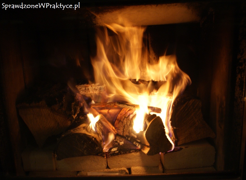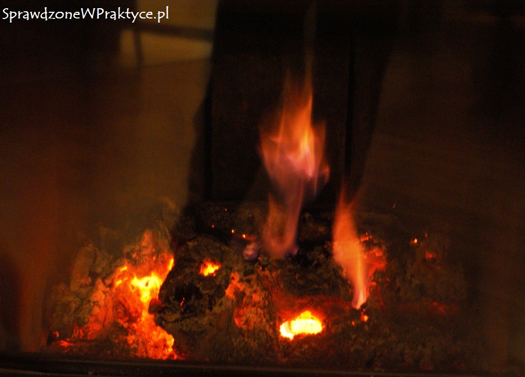 W kominku zacząłem palić o godzinie 17:00. Po pięciu godzinach w kominku nadal radośnie się paliło. Co prawda było już mniej ognia, ale bardzo dużo ciepła i gorącego żaru.
