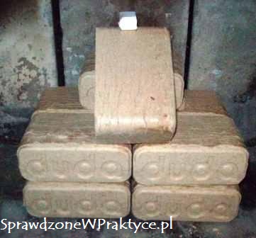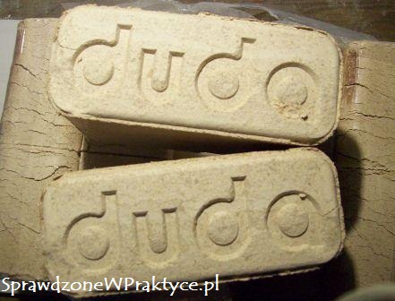 Brykiet drzewny z firmy DUDA to solidny produkt. Kostki mają ledwo wyczuwalny zapach drewna. W rękach nie można ich rozrkuszyć, mimo, że wyglądają jak popękane. Są twarde i dobrze sprasowane. Producent „chwali się” że kostki brykietu „wyciskane” są pod naciskiem 30 ton. To tak jakby na formie postawić załadowanego TIR-a. Robi wrażenie.
