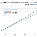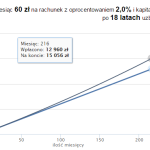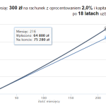 Jeśli założymy, że przez całe 18 lat średnie oprocentowanie konta oszczędnościowego dla juniora będzie wynosiło 2% a podatek od oszczędności nie zmieni się w porównaniu ze stanem na rok 2015, to zgromadzone kwoty będą wyglądały następująco.