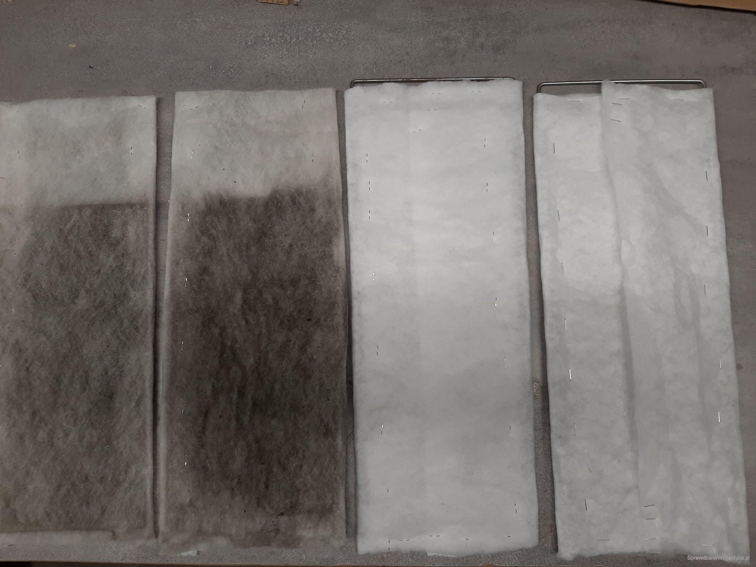 Tak wyglądają filtry z mojego rekuperatora. Po lewej brudasy, które mają około 6 miesięcy, po prawej nowe, które sam wykonałem.
